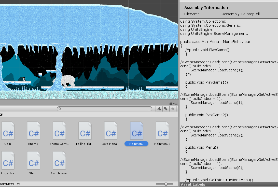 The game seen on the video above, is called "Frosty Hikes." This is a 2D platform game I created in Unity, in early 2020. The scripts were written in C#. The game features a hiker who is on his way to his home, which is an Igloo. The environment is snowy, and as such, so are the enemies. Creatures such as snowmen, penguins, polar bears, and arctic wolves all are found in the game. Any contact with such creatures, restarts ends the game.