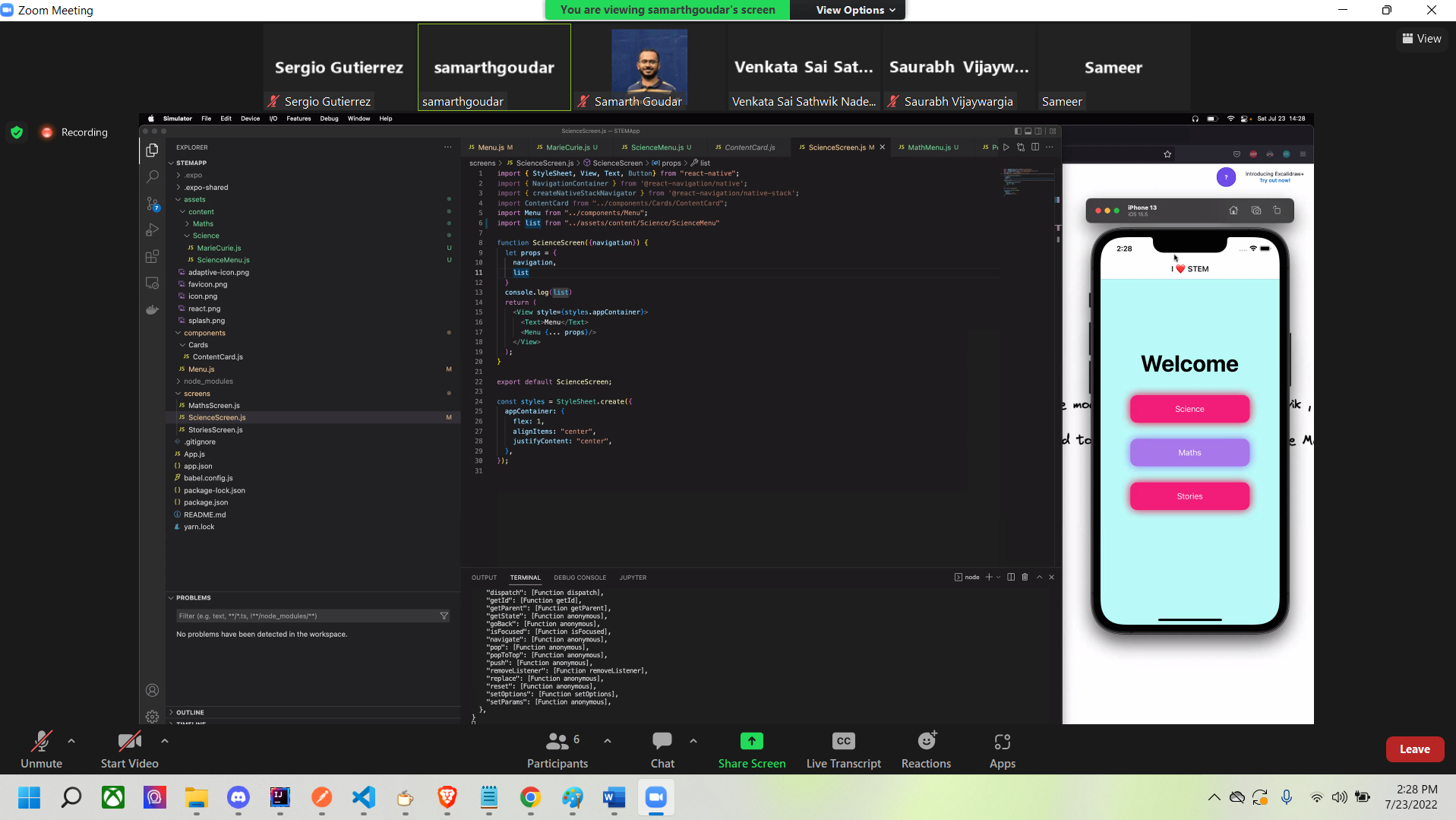 My contributions were adding 5 Mathematicians, 5 Scientists, working on the creation of one of the react components, as well as all the meetings involving discussions of the project. The following, is a zoom meeting screen captured image, of a meeting we had. We were working remotely that day: